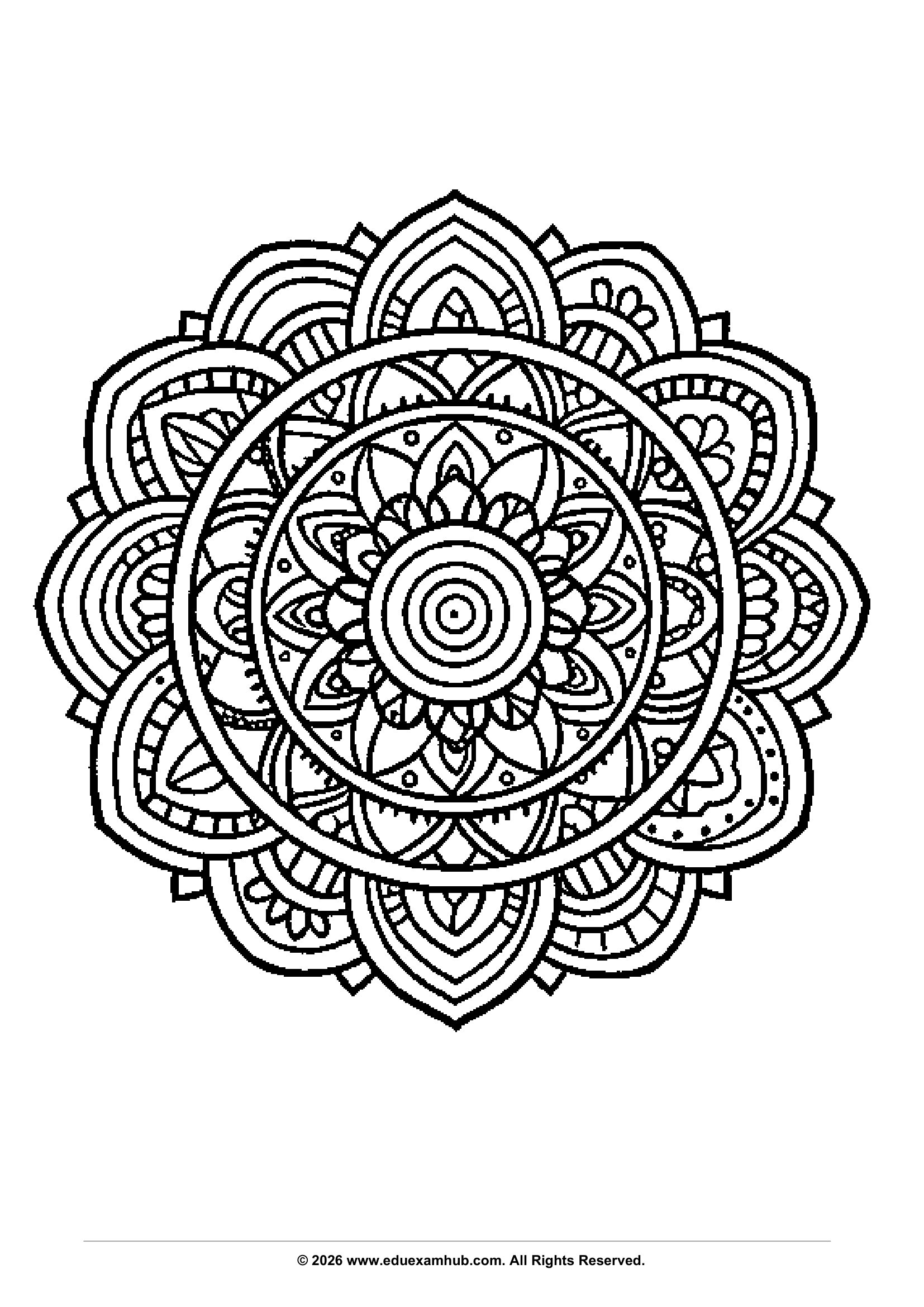 Relax and enjoy creative time with beautiful mandala coloring page. These printable designs help improve focus, creativity, and mindfulness. Simply download, print, and start coloring anytime!